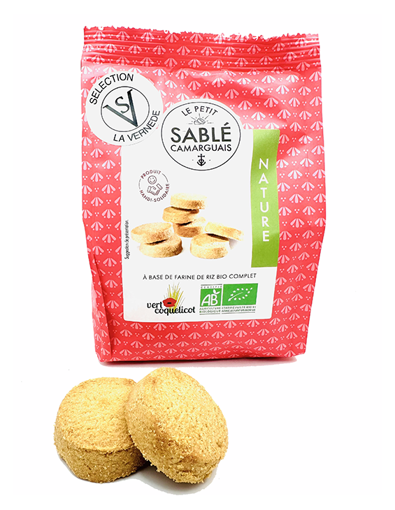 Le Petit Sablé Camarguais nature est produit à partir de farine de riz bio complète et d'ingrédients bio soigneusement sélectionnés.