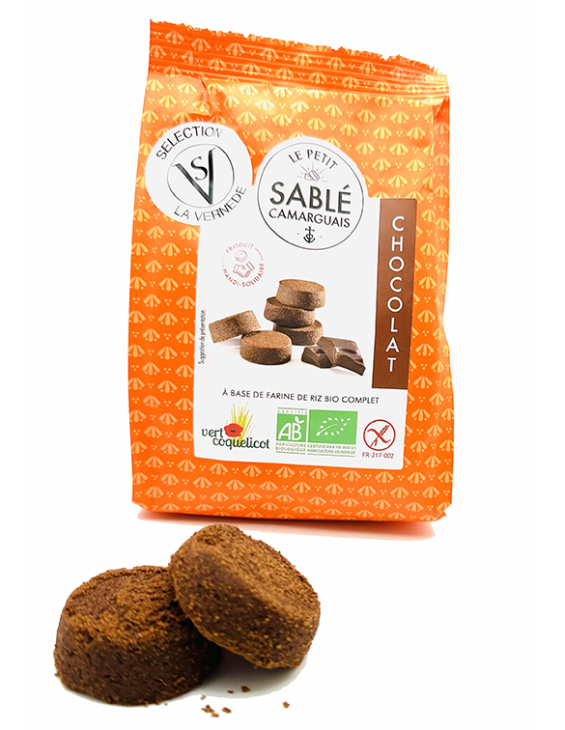 Le Petit Sablé Camarguais chocolat est produit à partir de farine de riz bio complète et d'ingrédients bio soigneusement sélectionnés.